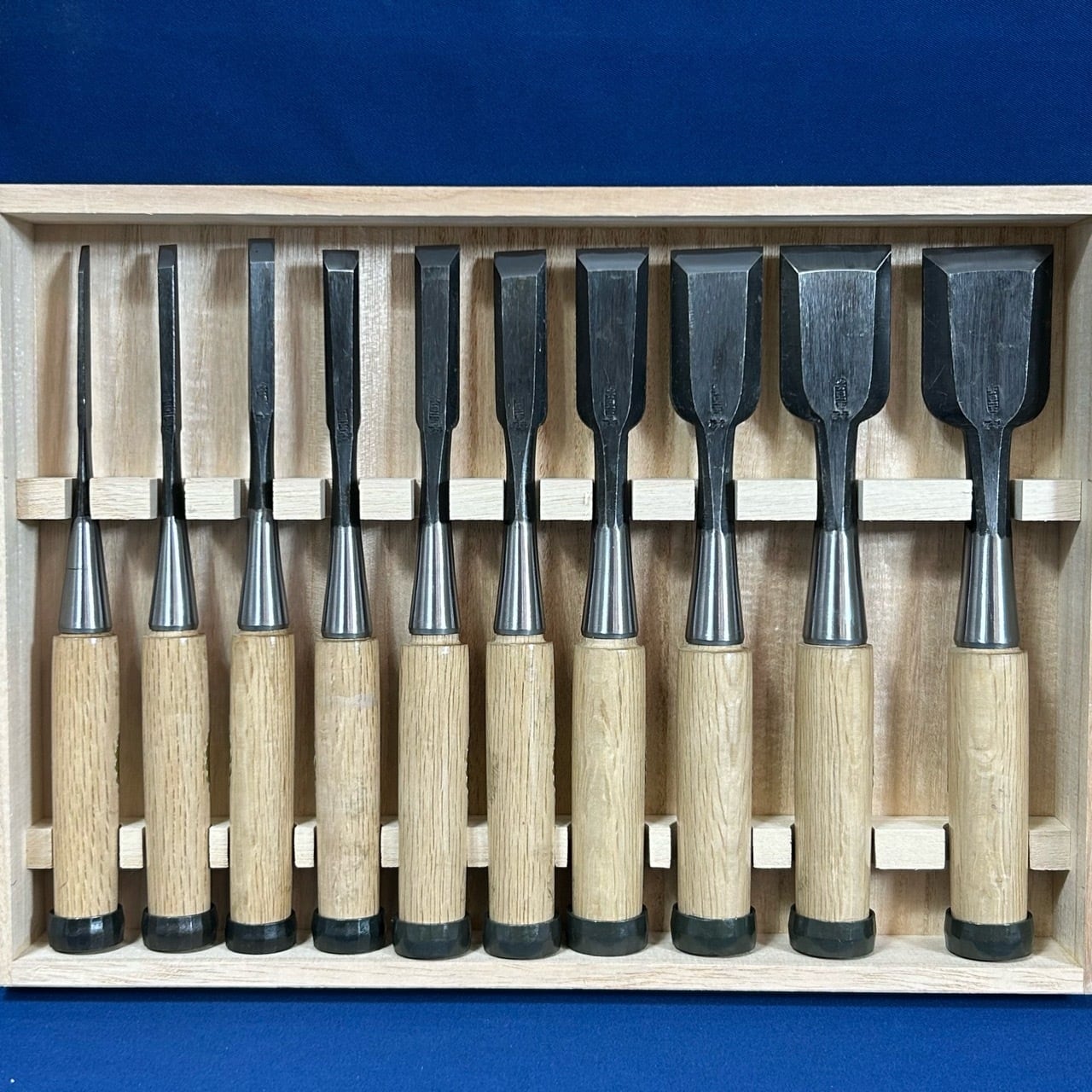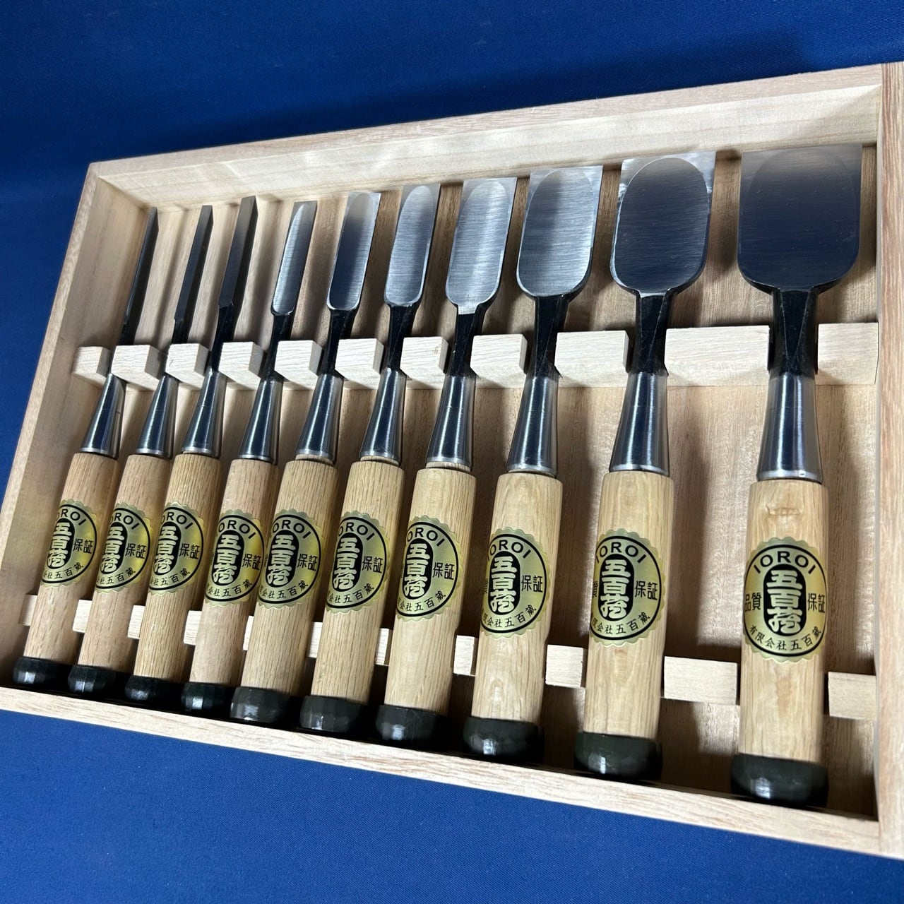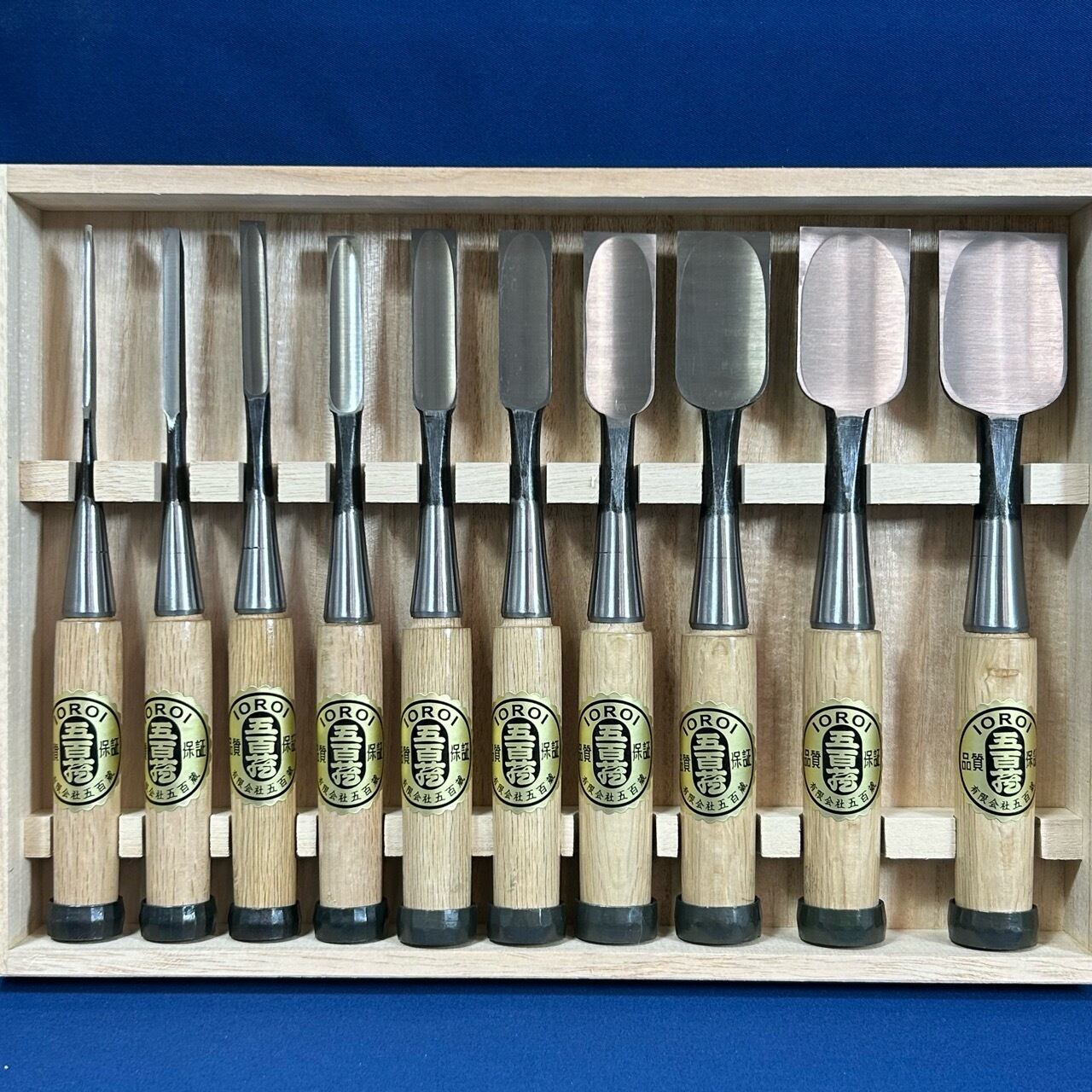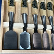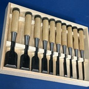 五百蔵(五百蔵秀夫)作 / 追入鑿 奴鑿 10本組鑿 かぶせ桐箱付 藩州三木刃物