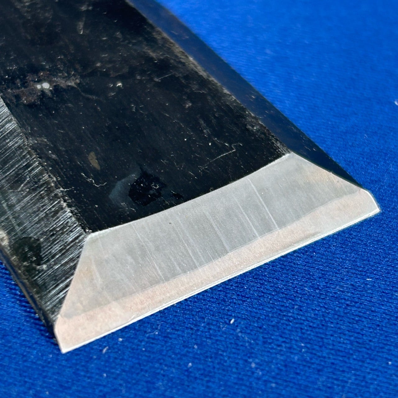 注意)五百蔵秀夫氏はご高齢の為、左右の研ぎ角度に少し癖がございます。若干イスカ形状になっております。