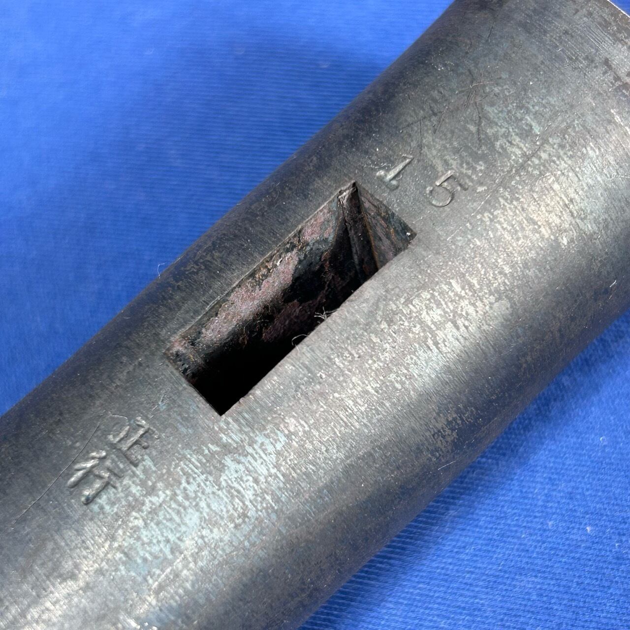 ■胴中の両端に鋼を鍛接し、叩いて丸め込む。