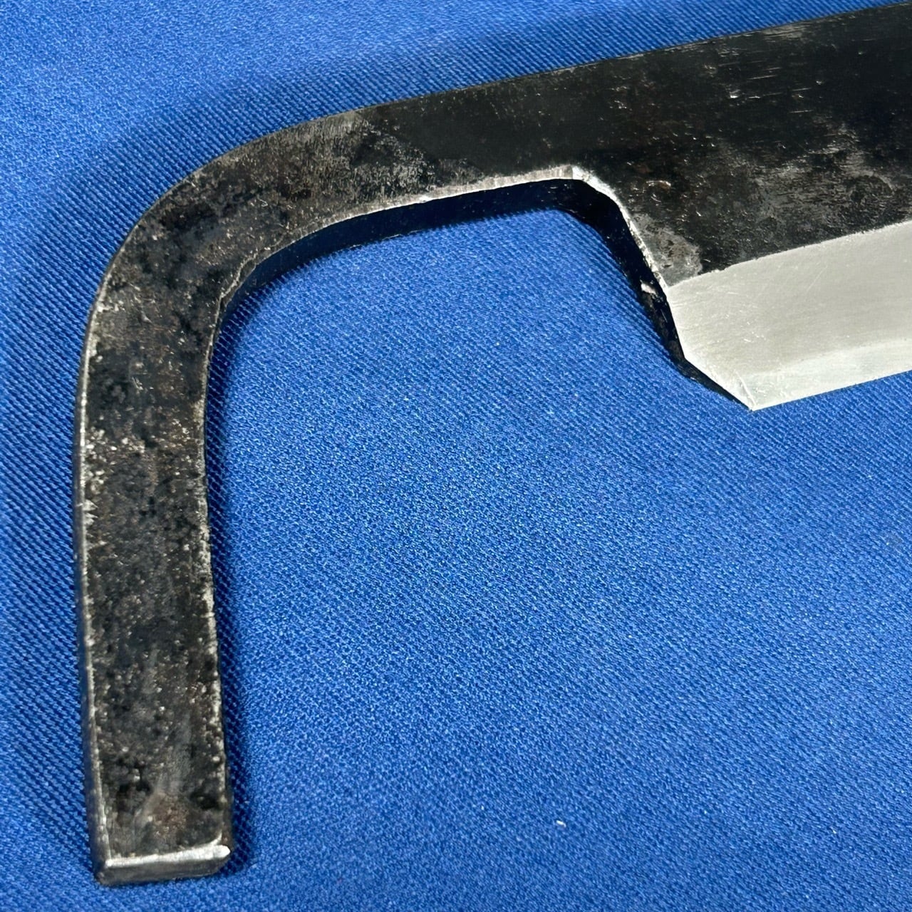 ・似鳥さんがログハウスをやる職人んさんから作成依頼を受けて制作されたものとなり、通常型の銑より持ち手が内側に曲がった形状をしているのが特徴です。