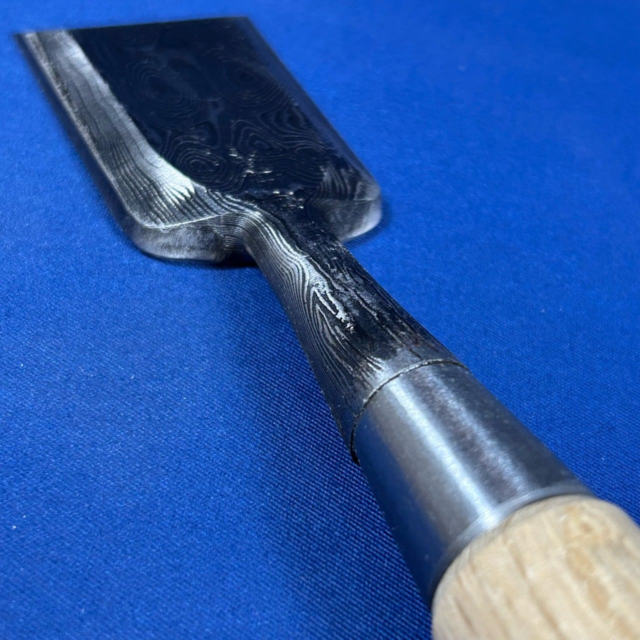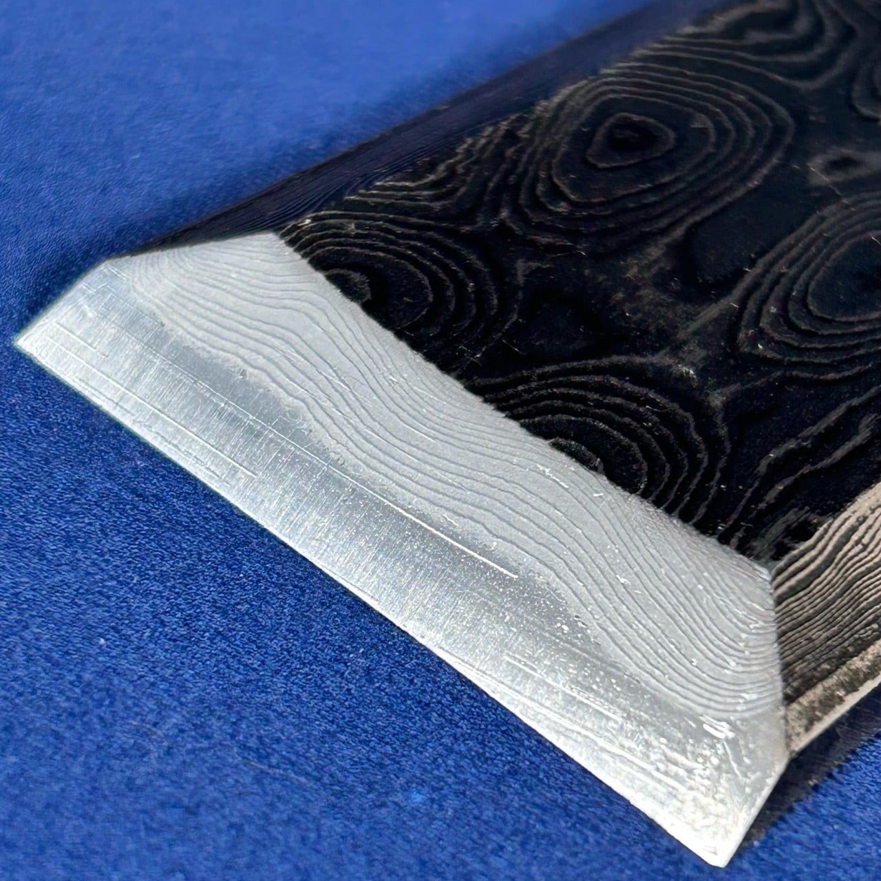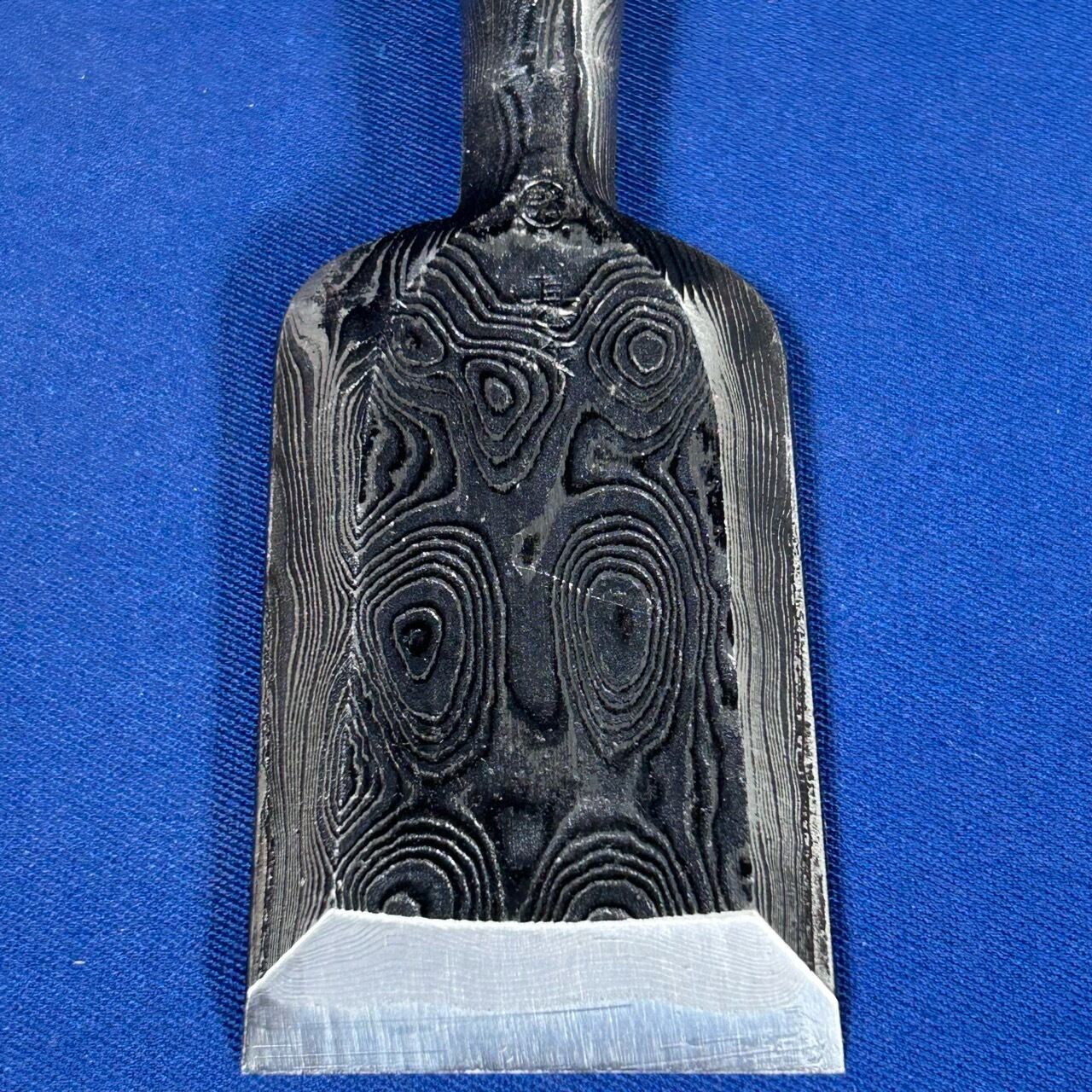 ・『墨流し』とは、火造りする前に積層材の地金を幾度となく叩き、流れるような木目や玉杢の模様を浮かび上げた美しい仕上げです。