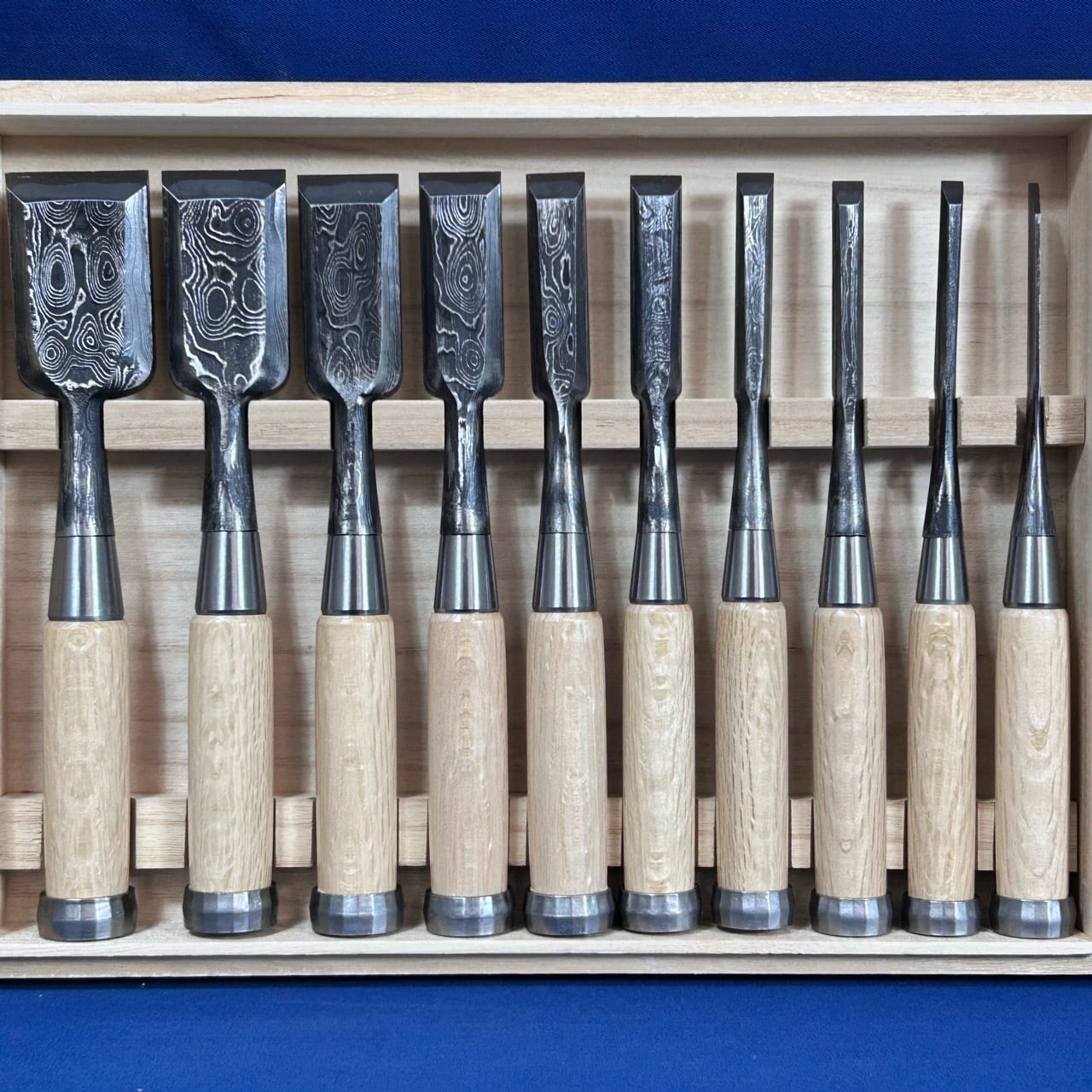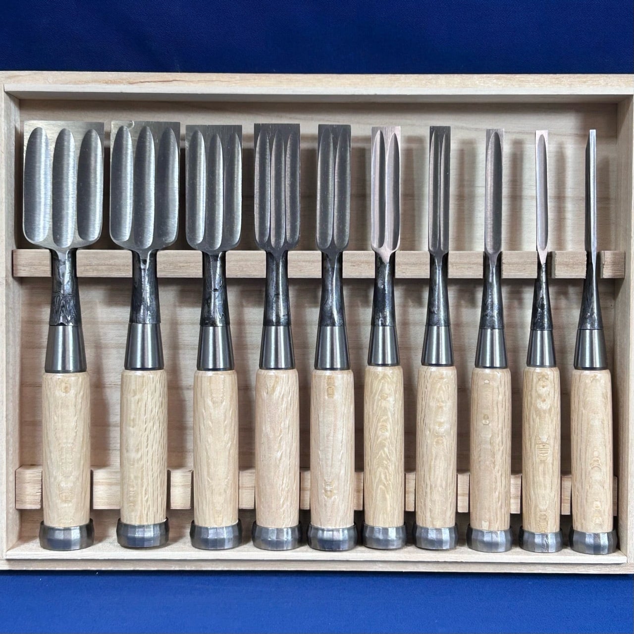 甚作 / 追入鑿 墨流し 三ツ裏 10本組鑿 白樫柄 桐箱付