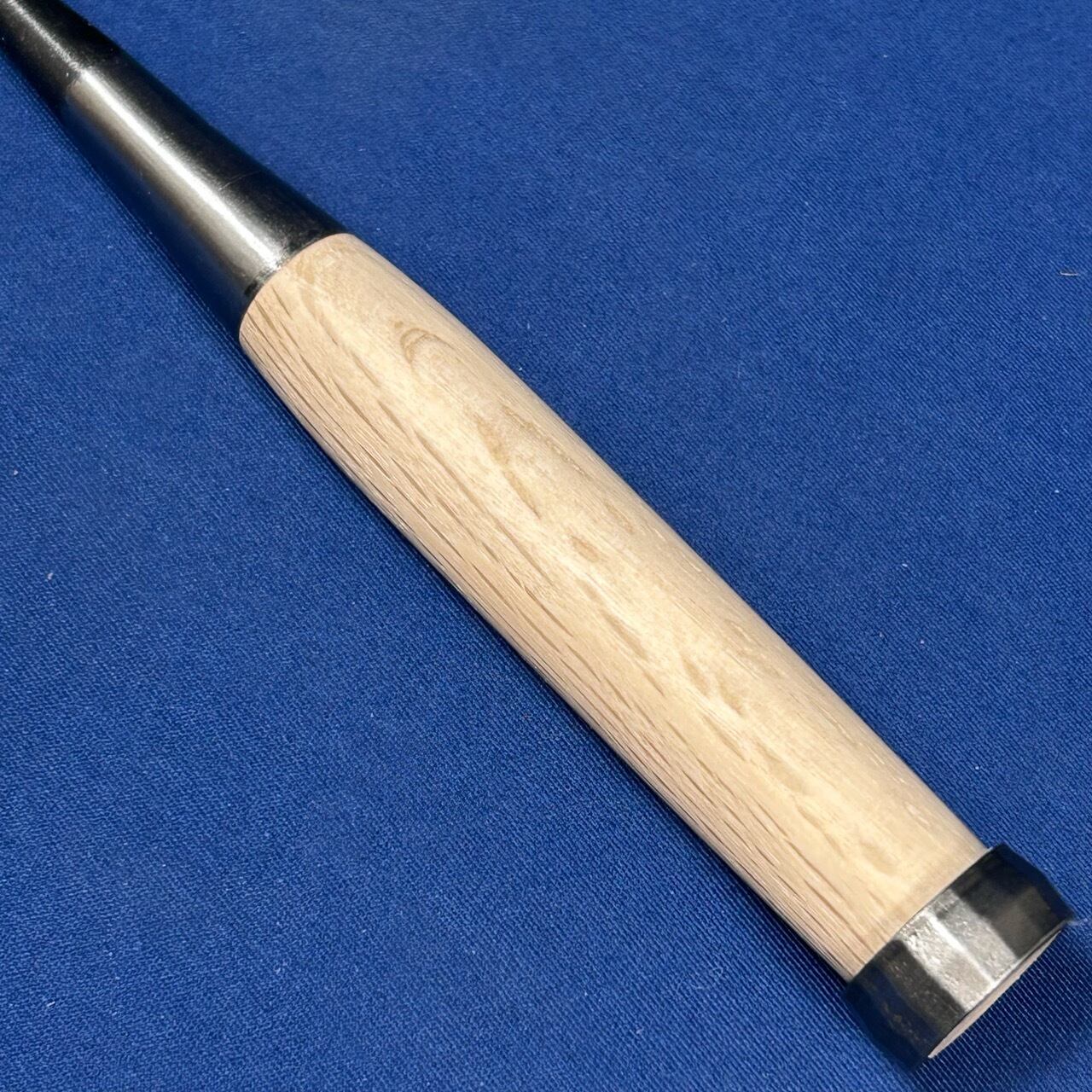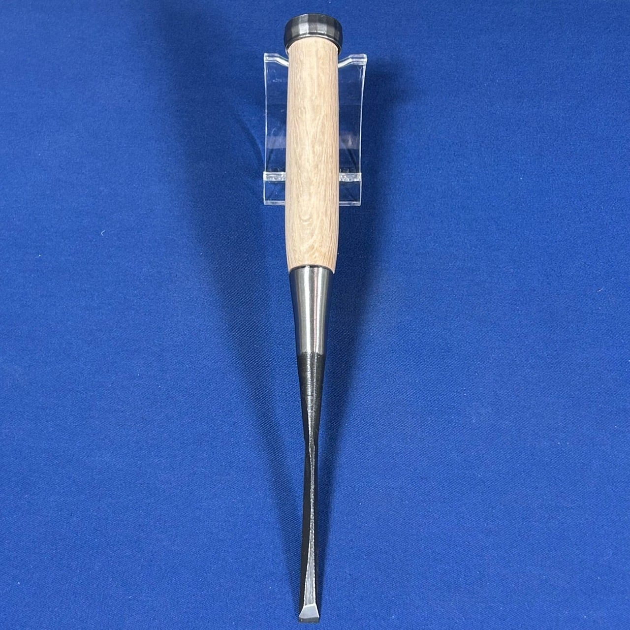 ◆主に仕上げで使う物なので下がり輪(桂)は付いておりませんが、こちらのバチ鑿は玄能で叩けるように下がり輪(桂)が付いております。