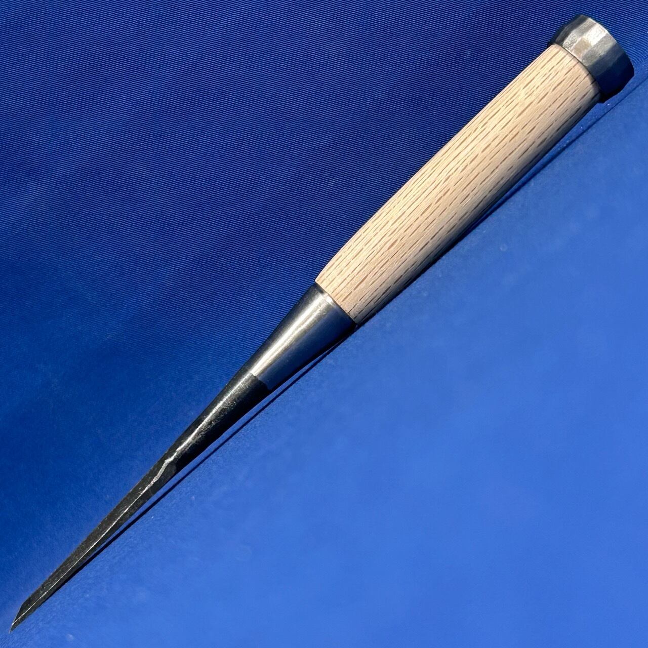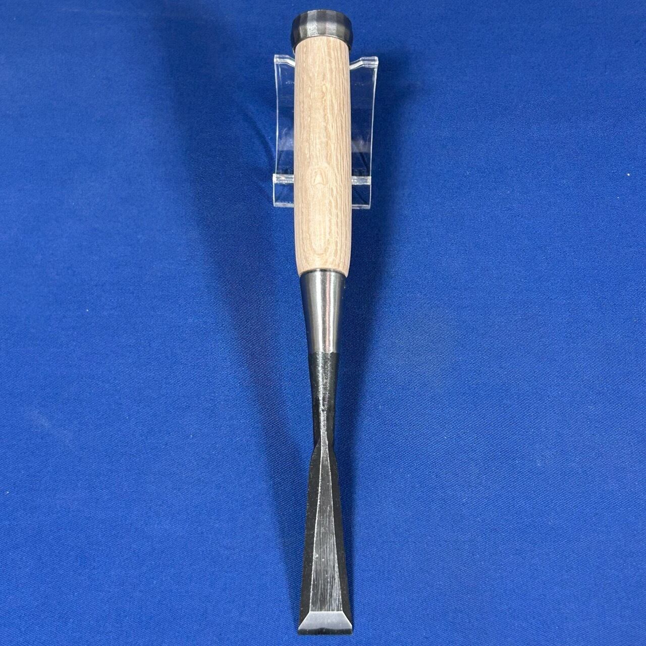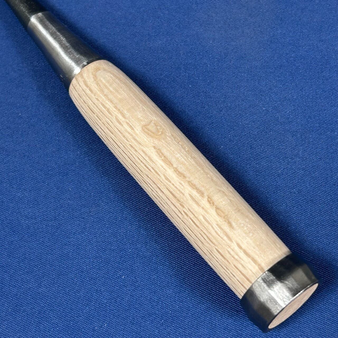 ◆主に仕上げで使う物なので下がり輪(桂)は付いておりませんが、こちらのバチ鑿は玄能で叩けるように下がり輪(桂)が付いております。